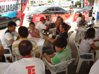 Ontem, sábado, o SINTE ,em conjunto com a ADUERN e o COMEM, promoveu o “Pingo da Mei Dia” da greve. Professores, estudantes, poetas e cantores estiveram reunidos para mais uma manifestação.