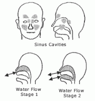 A técnica, explicada por Gharote (2000), ver figura 2, consiste em uma xícara específica ou em bule pequeno, coloque água morna com um pouco de sal. Em seguida, introduza o bico na narina direita, flexione o pescoço e incline a cabeça um pouco para o lado esquerdo. Ao atingir a posição correta com a cabeça, a água sairá pela outra narina. Então repita o mesmo procedimento com a outra narina. Assim as fossas nasais são limpas com água.