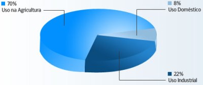 Todavia, não pense que o problema está somente lá, no Oriente Médio, aqui bem perto já é possível sentir os desajustes no tratamento que se dar a este líquido. Sabe-se o quanto se utiliza da água para sobrevivência. Grandes quantidades de água são necessárias para fornecer alimento, abrigo e atender a outras necessidades e desejos (fig.2).