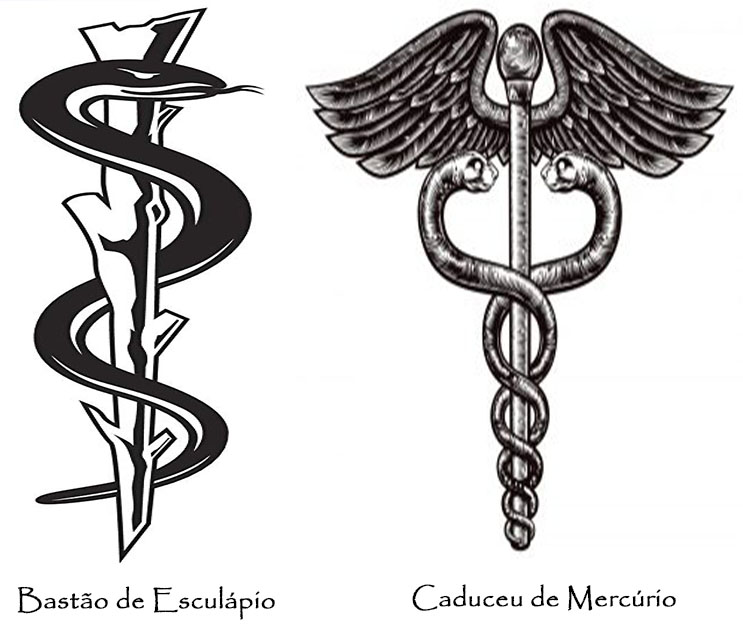 Ah, já ia me esquecendo! O símbolo da atividade médica (bastão de Esculápio) é quase sempre confundido com o símbolo que representa as atividades comerciais (o caduceu de Mercúrio – este era filho de Júpiter e de Maia), esta confusão leva a constantes erros quando alguém vai utilizar-se da simbologia médica em cartão de visita, ou ainda, se observa esta ocorrência em algumas das organizações medicas americanas.