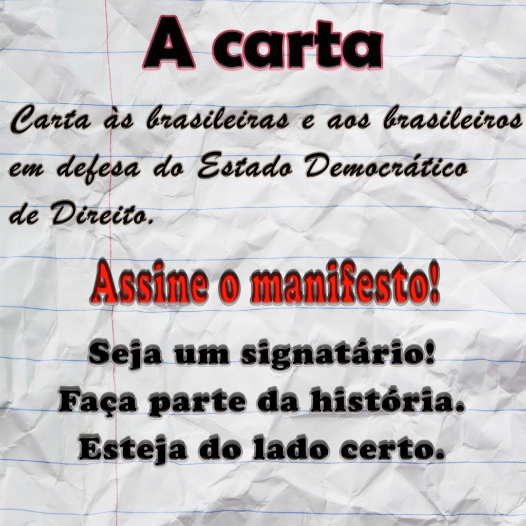 O manifesto será lido no próximo dia 11 de agosto, na Faculdade de Direito da USP, no Largo de S. Francisco.