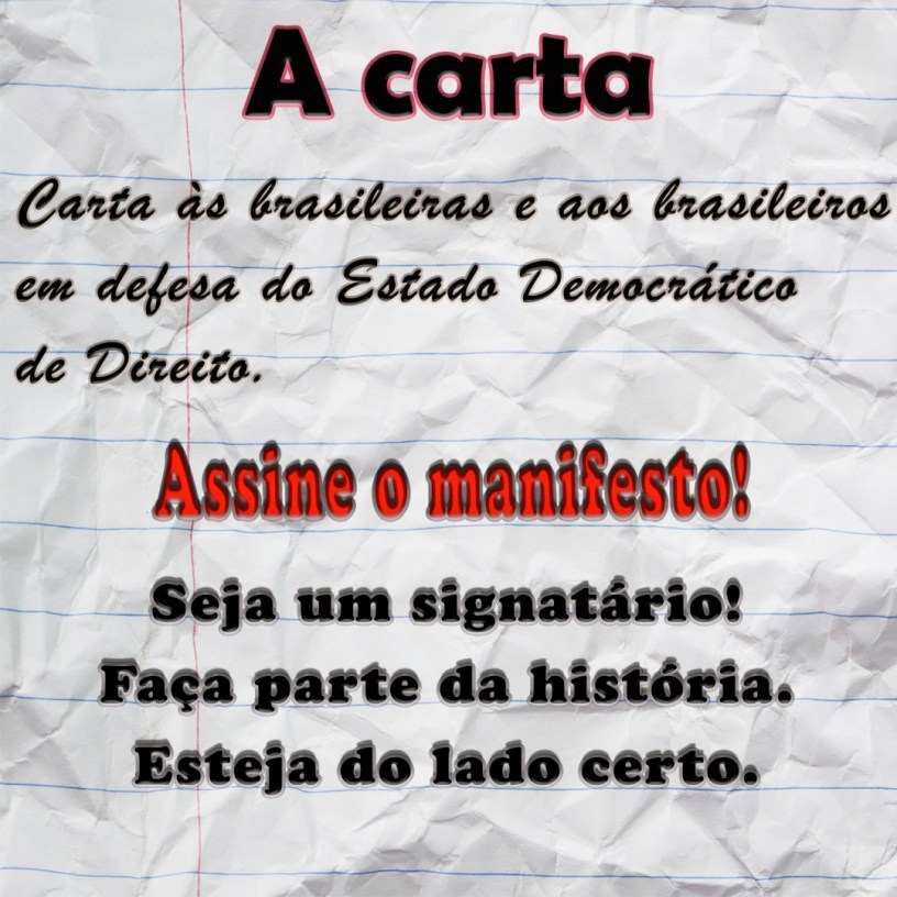 A Carta, uma iniciativa da Faculdade de Direito do Largo São Francisco, da Universidade de São Paulo (USP), está hospedada no site: Estado de Direito, Sempre! Pode ser assinada por pessoa interessada em defender a democracia brasileira.